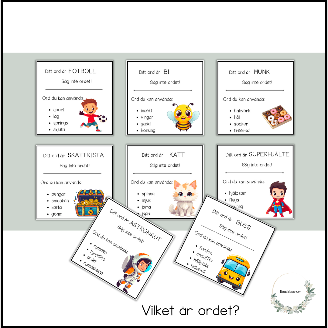 Språkutvecklande lek där eleverna ska beskriva sitt ord för kompisarna utan att använda själva ordet.