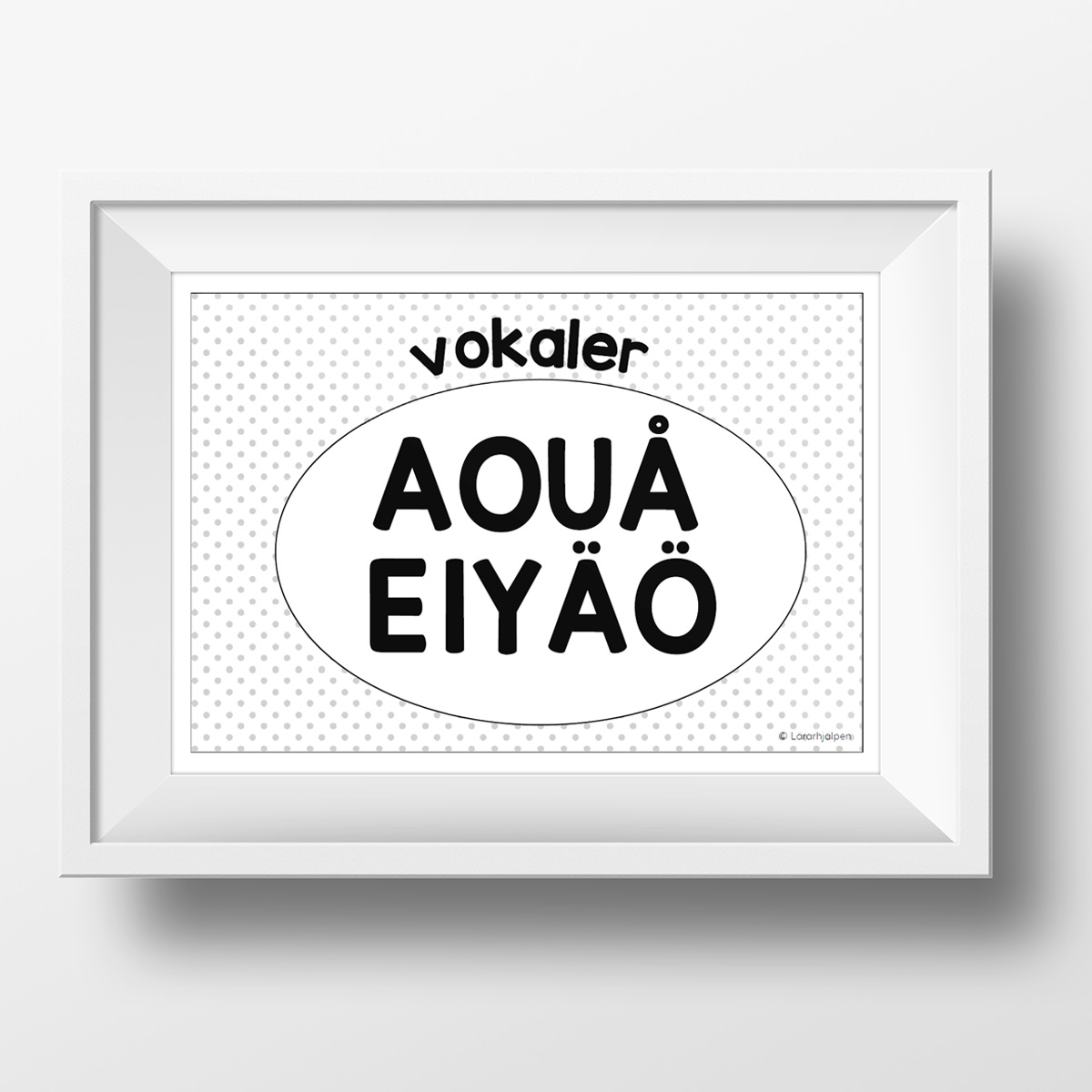 Om du inte vill skilja på hårda och mjuka vokaler är denna vokalskylt perfekt att använda! Inkluderar både en version i färg och en svartvit.