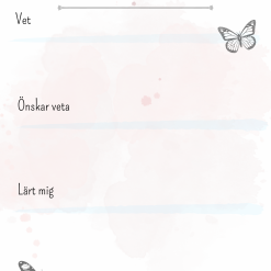 Inför det nya arbetsområdet kan det vara en god idé att ta reda på vad eleverna reda Vet och kan om ett visst ämne, tex om växter, fotosyntesen, kroppen, rymden, dinosaurier, vatten, vattnets kretslopp, människans uppkomst eller svampar. När denna rubrik är avklarad går man vidare till Önskar veta och skriver upp några punkter eller meningar om vad eleverna vill få reda på om valt ämnesområde. Sist men inte minst- efter att man har arbetat färdigt med ett visst område så är det dags att gå vidare till den sista rubriken Lärt mig. Med hjälp av denna rubrik så synliggör man elevernas nya kunskaper och utveckling på ett enkelt och tydligt vis. Får man inte plats att skriva allt man har lärt sig så går det bra att välja ut tre-fem meningar alternativt att fortsätta skriva på baksidan.