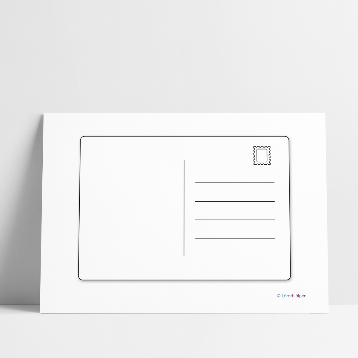 Letar du efter en enkel vykortsmall att använda med dina elever? Då passar det här dokumentet perfekt! Ett förslag är skriva ut vykortsmallen på tjockare papper och låta eleverna klippa ut vykortet. Därefter kan de rita och måla en framsida på vykortet och skriva på baksidan där raderna finns.