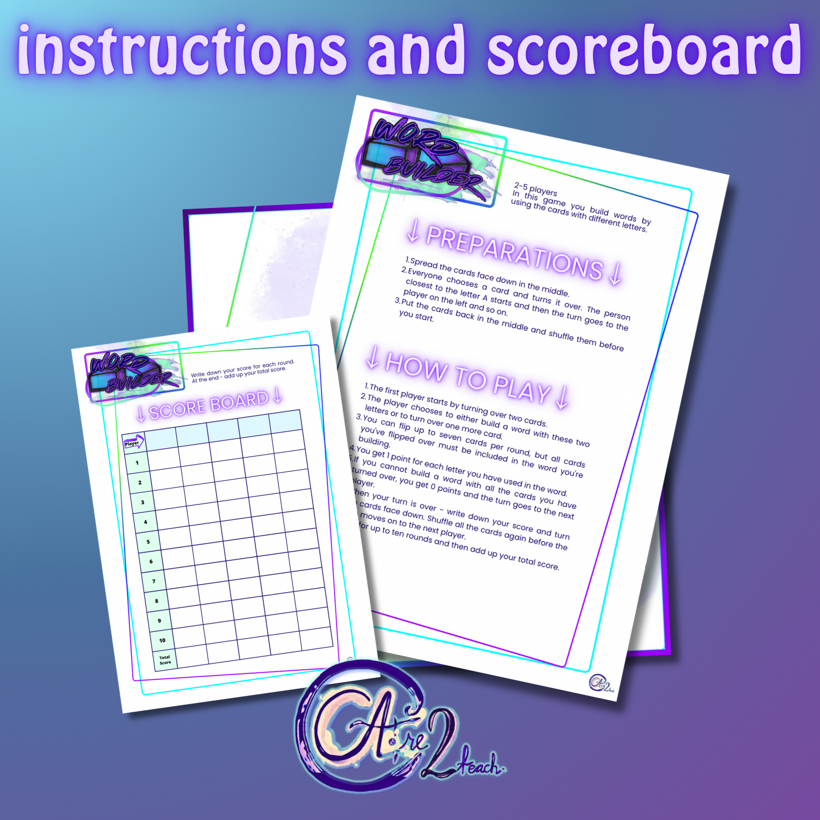 De börjar alltid sin tur med att vända upp två kort och får sen välja om de vill bygga ett ord på dessa två bokstäver eller om de vill vända på fler bokstäver (upp till sju). Alla bokstäver de vänder upp måste finnas med i ordet. De får 1p per bokstav de använt och dessa skrivs in i poängprotokollet.