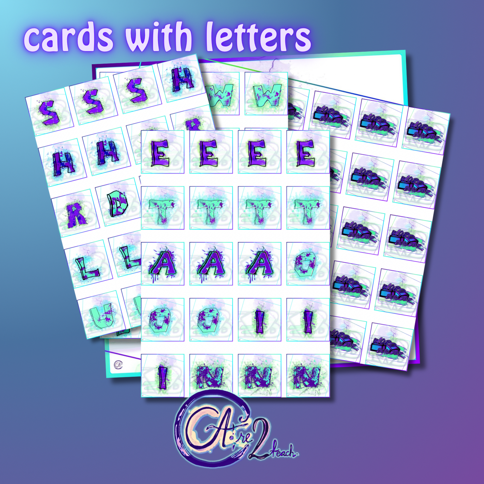 Ett spel på engelska där eleverna får bygga ord med hjälp av de nedåtvända bokstavskort som de väljer att vända på.