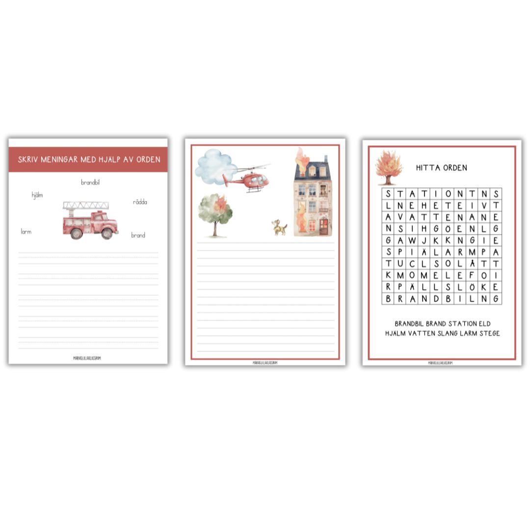 Skriva fint och stava ord som hör till brandmansyrket